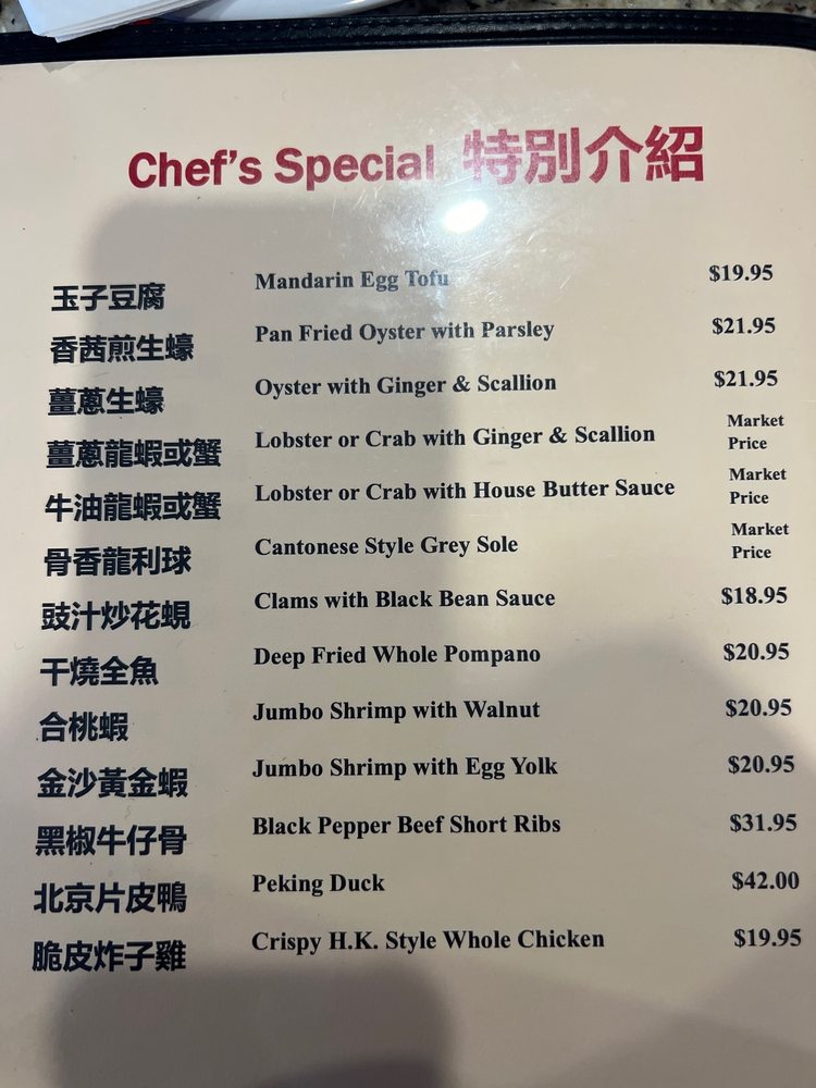 “ Came for Dim Sum and to take an entree to-go for lunch the next day. First of all, the chili oil that they have on the tables tastes great with EVERYTHING. I even put it on the sweet egg buns we got and it was so good haha. Let's talk Dim Sum. I think the prices were extremely fair for the portions! All the buns were made perfectly. The Siu Mai was delicious and pretty big/filled up! The only thing I wasn't crazy about was the Crispy Seafood Dumplings. They kind of reminded me of empanadas but made with tempura. My boyfriend loved the crispy seafood dumplings though. Let's talk about the entrees. I got orange chicken, and my boyfriend got general tso's chicken. THE ENTREES WERE SO GOOD. I could actually taste the fresh orange in the orange chicken. I've been to a few Chinese restaurants that you can't tell the difference between the general tso's and orange chickens.. but this was definitely distinguishable! I wish it came with more broccoli though. The staff was extremely attentive to our needs. They even boxed up our food when we asked for boxes for our stuff to go (I was not expecting them to actually box up our food. So nice of them) and they even brought an extra container of the chili oil without us asking because they saw how much we were using haha. I will say though that our table was near the sinks or something, and I felt like we were being watched by the staff while we ate. I would've liked a bit more privacy, but they have other tables in the restaurant that are away from the area that the staff runs out the food. Just unlucky table placement for us! I would definitely come back. ”